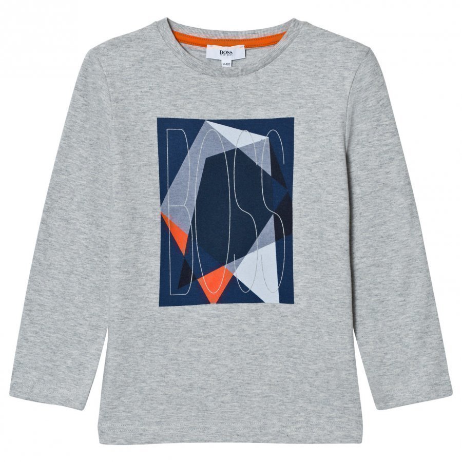 Armani Junior Grey Multi Color Logo Long Sleeve Tee Pitkähihainen T-Paita