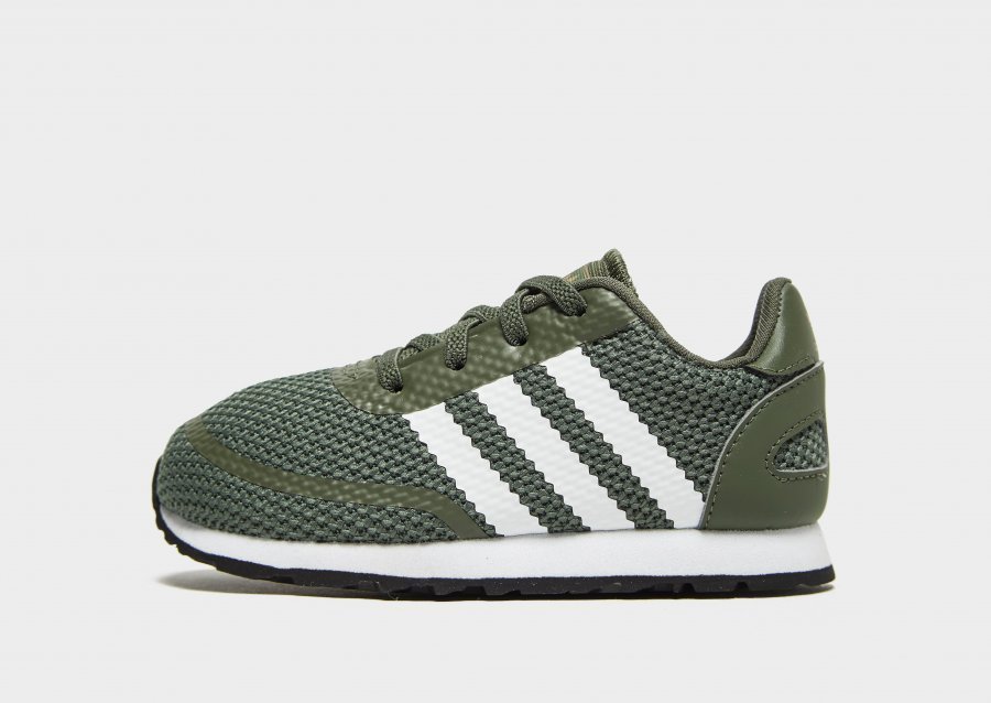 Exclusive to JD. Give your little one some ’70s runner essentials with these infants’ N-5923 trainers from adidas Originals. In an olive colourway, they are made with a textile upper with synthetic leather overlays for a breathable and supported wear. This all sits on a EVA midsole, providing lightweight cushioning for their little feet. With a grippy outsole to keep them steppin’, they are finished with serrated white 3-Stripes to the sidewalls along with golden Trefoils to the tongue and heel.
