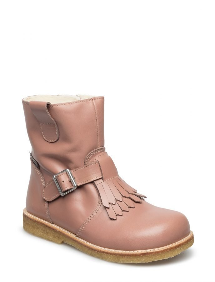 ANGULUS Valmistusmateriaali: Päällinen: 100% Nahka ulkopohja: 100% Kumi crepe Pohja Vetoketjukiinnitys sivulla Eristävä sisävuoraus Sivulla