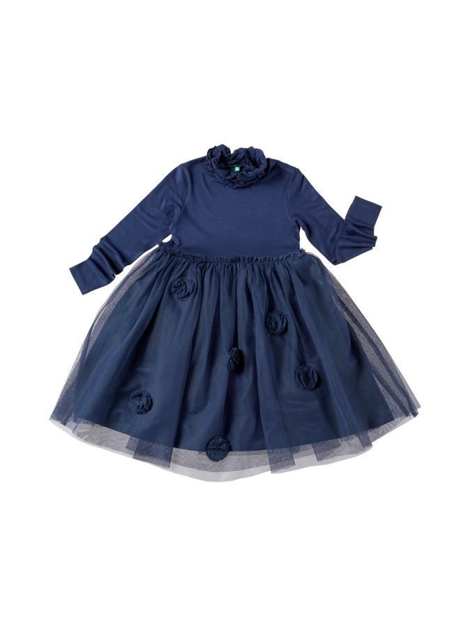 Tyllimekossa on pehmeä pitkähihainen viskoosiyläosa, jossa on hieman joustava ja rypytetty poolokaulus. Tyllihameen alla on sileä ja pehmeä vuorikangas.