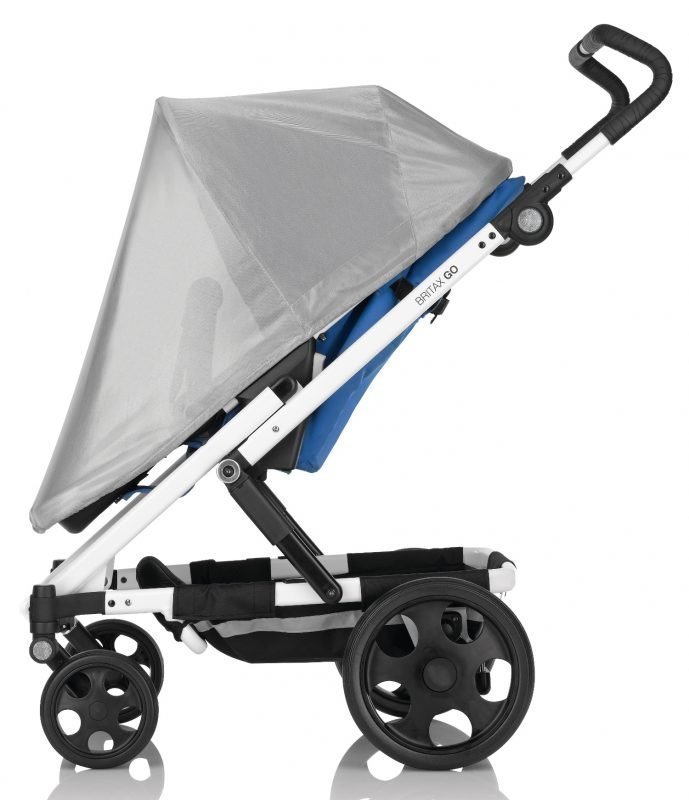Britaxin Go-malliin sopiva hyttysverkko. Verkko on helppo vetää vaunujen päälle suojaamaan lasta hyönteisiltä.