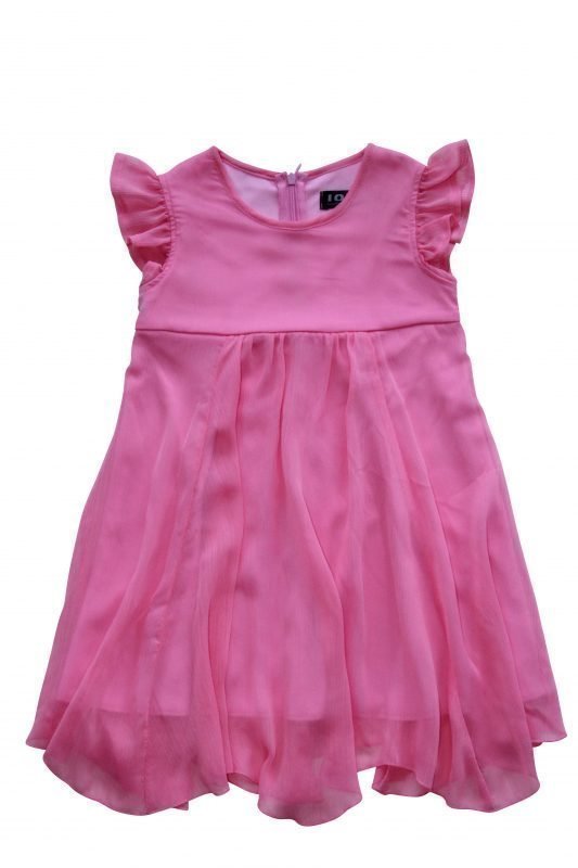 Cadeaun vaaleanpunainen juhlamekko. Mekossa on lyhyet hihat, pyöreä pääntie ja vetoketju takana. Materiaali: 100 % polyesteri