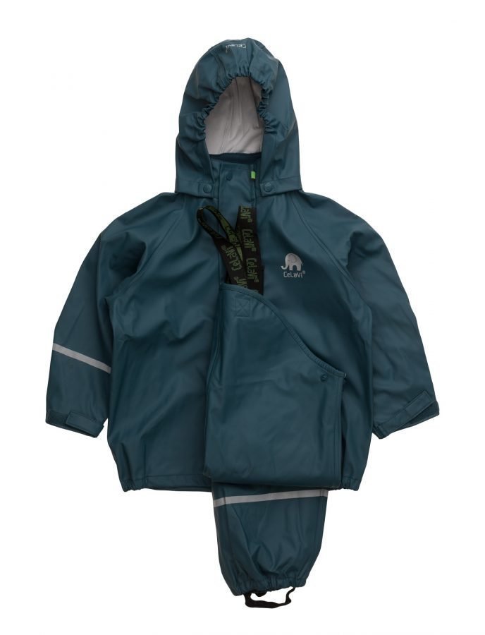 CeLaVi Valmistusmateriaali: 62% Polyesteri, 38% Polyerethan Vedenkestävä Korkea kaulus fleecevuorella Tarrakiinnitys hihansuissa Joustava nilkkojen ympäriltä