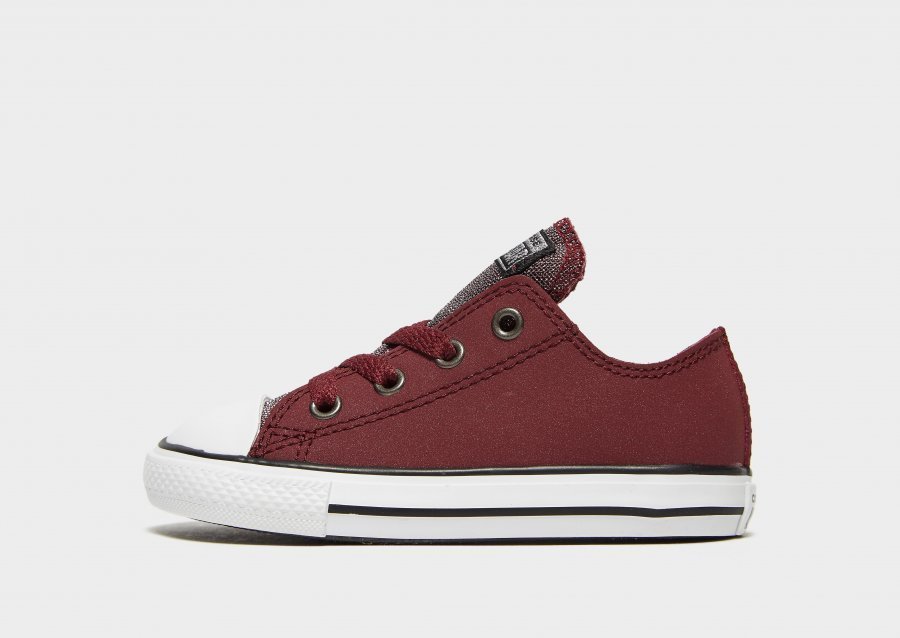 Exclusive to JD. Bring an iconic style to your little one’s footwear with these infants’ All Star Ox trainers from Converse. Remaining a legendary favourite since their creation in 1917, these sneakers are made with a supportive textile and leather upper with a secure lace-up fastening to lock their feet in. These low-cut creps are sat on a responsive midsole to keep them stepping in comfort, while the burgundy colourway and glittery textured tongue brings a standout vibe to their ’fit! With the legendary black stripe to the midsole, these trainers are finished with Converse branding to the tongue and heel.