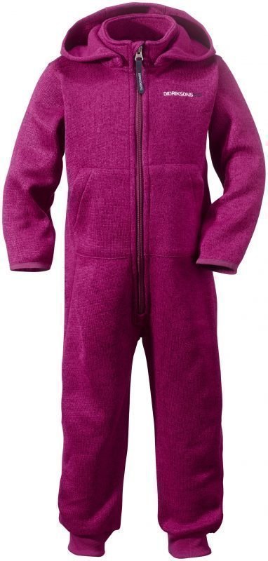 Pehmeä ja päällä mukava haalari fleeceneuletta. Haalarissa on korkea kaulus sekä pehmeät resorit lahkeensuissa. Helppo pukea, edessä pitkä vetoketju ja kauluksessa leukapehmuste. Haalarissa on irrotettava huppu, joka on helppo vetää päähän ilman viiletessä. Haalari sopii niin kouluun, retkeilyyn kuin oloasuksi kotona. Materiaali: 100 % polyesteri