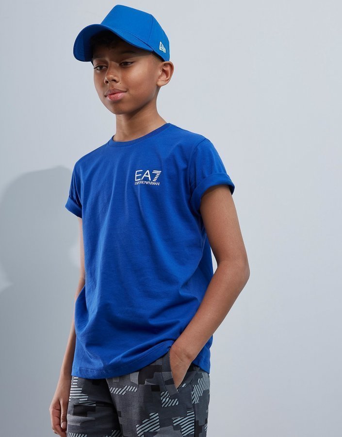 This Junior’s Core Logo T-Shirt from Emporio Armani is an iconic boys essential. Made from 100% cotton for soft, comfortable wear all day, the tee comes in a bright blue colourway with silver branding EA7 to the chest for ultimate soft skin feel and standout style. Get comfy, stay cool and experience Emporio Armani at it’s finest!