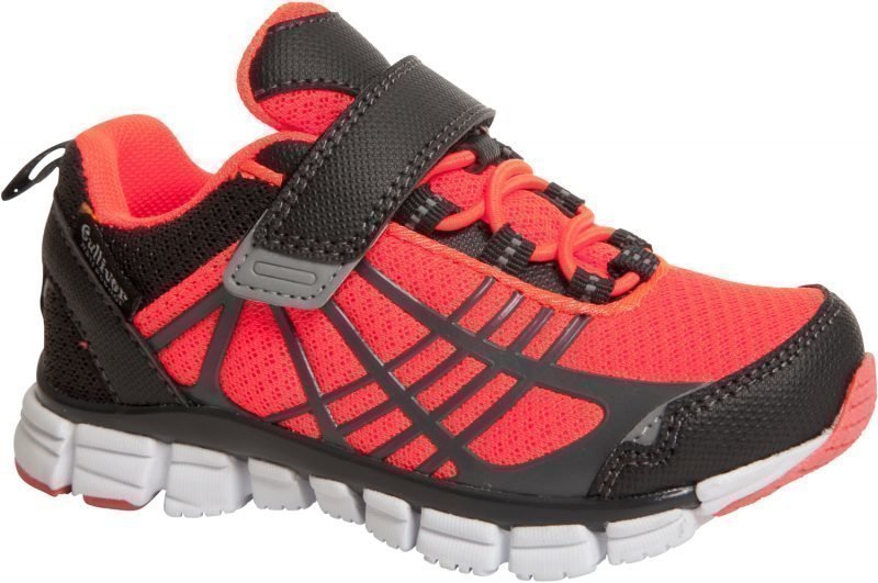 Gulliverin värikkäät vapaa-ajan kengät. Käytännölliset vapaa-ajan jalkineet metsään, leikkipaikalle ja muihin vauhdikkaisiin aktiviteetteihin. Vedenpitävissä jalkineissa on reilunmallinen, pitävä pohja. Tossuissa on joustavat nauhat, säädettävä tarranauha sekä pukemista ja riisumista helpottava vetolenkki kannassa. – Vedenpitävät – Joustavat nauhat – Säädettävä tarranauha – Vetolenkki Materiaali: mesh Vinkki! Kengän koko on kengän sisämitta. Oikean koon valitsemiseksi mittaa lapsen jalan pituus. Aseta paperi lattialle seinän viereen ja lapsen jalka paperille kantapää seinää vasten. Varmista, että lapsen paino jakaantuu tasaisesti jaloille ja että lapsi ei nojaa seinään. Merkitse paperiin jalan pisin kohta. Mittaa lopuksi viivaimella merkin etäisyys paperin reunasta. Koska lapsen jalka kasvaa vauhdilla, kannattaa valita hieman lapsen jalkaa suurempi koko. Kasvuvaran tarve erilaisissa kengissä: Sandaalit: 10-15 mm Nilkkurit/saappaat: 15-20 mm Kävelykengät: 10-15 mm Urheilujalkineet: 10-15 mm Talvikengät: 15-20 mm Ensiaskelkengät: 15 mm Sisätossut: 10-15 mm Lapsen jalan kasvuvauhti keskimäärin: 1?2-vuotiaat: 20 mm/v. 2?3-vuotiaat: 15 mm/v. 3?11-vuotiaat: 10 mm/v.