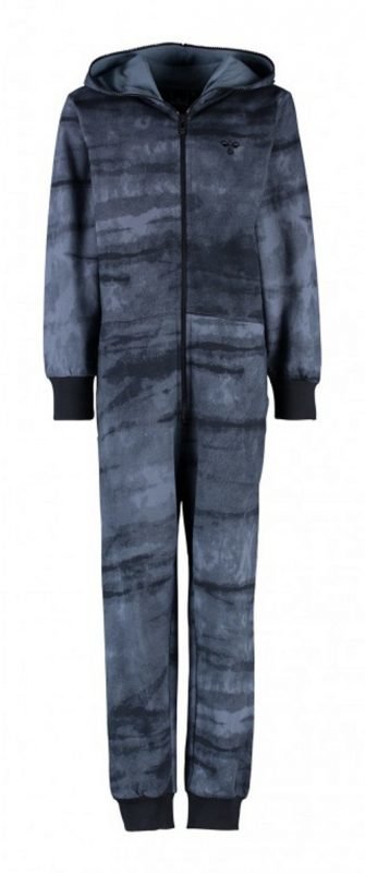 Hummelin sininen jumpsuit. Päällä mukava jumpsuit sopii hyvin oloasuksi koti-iltaan tai väliasuksi haalarin alle. Sinimeleeratussa asussa on kivannäköinen kuvio. Pitkän vetoketjun ansiosta haalari on helppo pukea ja riisua. Haalarissa on mukava huppu sekä resorit hihan- ja lahkeensuissa. Materiaali: 80 % puuvillaa, 20 % polyesteriä Öko-Tex 100 -sertifioitu