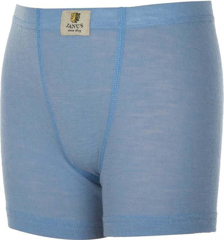 Janusin vaaleansiniset, bokserimalliset alushousut. Bokserit ovat pehmeää merinovillaa ja niissä on joustava kuminauhavyötärö. Materiaali: 100 % merinovillaa