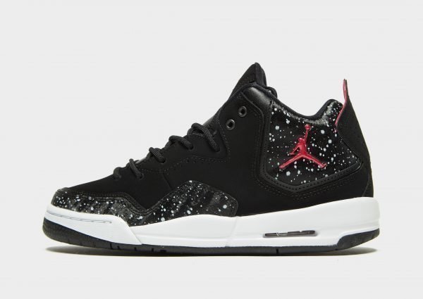 Rep a basketball inspired icon in these juniors’ Courtside kicks from Jordan. In a black colourway with white speckle detailing, these trainers have a leather upper for a premium look and solid support. Sat upon a responsive midsole that features visible Max Air cushioning for all day comfort, they also have a grippy outsole to keep you on your feet when dominating the court. With a tonal lace up fastening, they’re finished with the Jumpman logo to the sidewalls and tongue in red.