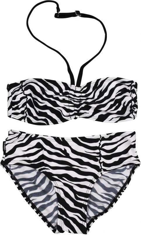 Lindbergin seeprakuviolliset bikinit. Kankaassa on vuori etupuolella ja yläosassa säädettävät, halterneck-malliset nauhat sekä solki selässä. Suojakerroin 50+ suojaa lapsen ihoa haitallisilta auringon säteiltä. Materiaali: 83 % polyamidia, 17 % elastaania