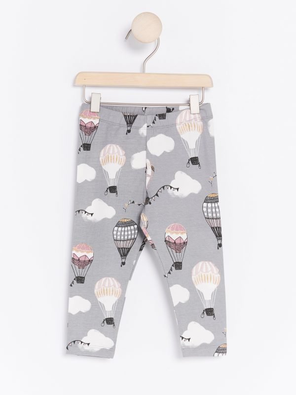 Pue pienokainen ihaniin leggingseihin, joissa on kimalteleva kuumailmapallopainatus. Lisäksi ne on valmistettu pehmeästä ja mukavasta luomupuuvillasekoitteesta.