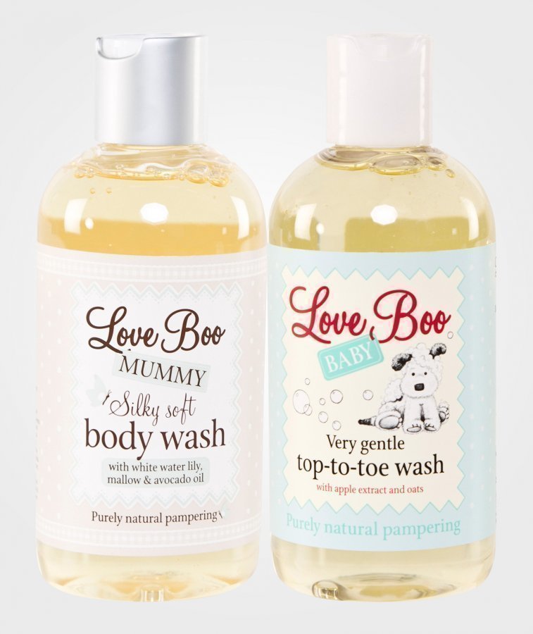 The Happy Baby Shower Kit will be a perfect gift for the new mom in your life, from the natural body care experts at Love Boo. For mom, there’s Silky Soft Body Wash with avocado and white water lily oil to leave her skin super soft and supple. For baby, the Very Gentle Top to Toe Wash with olive oil and oats to gently cleanse hair and body while pampering delicate skin. Free from parabens, sulphates, TEA, petrochemicals, synthetic colors or DEA. Made in the UK. Kit includes: Silky Soft Body Wash – 250 mL. Very gentle Top-to-Toe Wash – 250 mL. Ingredients: Silky Soft Body Wash: Aqua, sodium lauroyl sarcosinate, sodium cocoamphoacetate, cocamidopropyl betaine, lauryl glucoside, decyl glucoside, glycerine, citrus medica limonum (lemon) peel extract, citrus aurantifolia (lime) peel extract, zingiber officinale (ginger) root extract, cocos nucifera (coconut) oil, mentha piperita (peppermint) leaf extract, vanilla planifolia fruit extract, citrus nobilis (mandarin) peel extract, citrus aurantium dulcis (orange) peel extract, malva sylvestris (mallow) extract, nymphaea alba (water lily) extract, persea gratissima (avocado) oil, citrus paradisi (grapefruit) oil, citric acid, sodium hydroxymethyl glycinate, limonene, citral. Very Gentle Top-to-Toe: Aqua, sodium cocoamphoacetate, sodium lauroyl sarcosinate, cocamidopropyl betaine, lauryl glucoside, decyl glucoside, glycerine, coco-glucoside, glyceryl oleate, pyrus malus (apple) extract , gardenia tahitensis (Tahitian monoi) flower extract , avena sativa (oat) kernel extract, olea europaea leaf extract, parfum, sodium hydroxymethyl glycinate, citric acid.