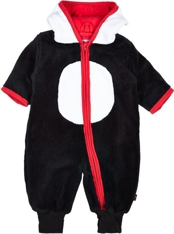 Me Toon hupullinen potkupuku. Hauskassa, pandoista innoituksensa saaneessa potkupuvussa on täyspitkä vetoketju edessä sekä huppu, jossa pandan kasvot ja korvat. Punaisia saumayksityiskohtia ja vuori. Materiaali: 100% polyesteriä