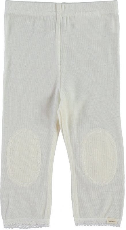 Lämmittävät vauvanalushousut merinovillaa merkiltä Name it. Resori vyötärössä sekä pitsireunat lahkeensuissa. Materiaali: 100% merinovillaa