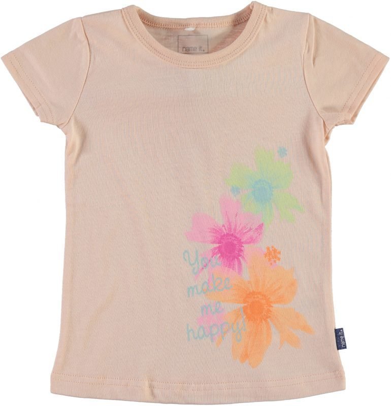 Name itin beige t-paita pehmeää puuvillaa. T-paidassa on pyöreä pääntie sekä kukkapainatus ja teksti ”You make me happy”. Materiaali: 100 % puuvilla