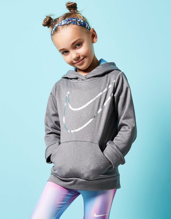 Give your little one a switched up look with this children’s Unicorn Hoodie from Nike. In a smooth grey colourway, it is made from soft poly to keep them feelin’ ultra-comfy whenever they pull it on. This hoodie is given a standout, contrast look with multi-coloured detailing to the inside of the hood, making them really feel like a unicorn! With ribbed trims and a side kangaroo pocket, this hoodie is finished with silver Swoosh branding large to the chest and small to the left sleeve.