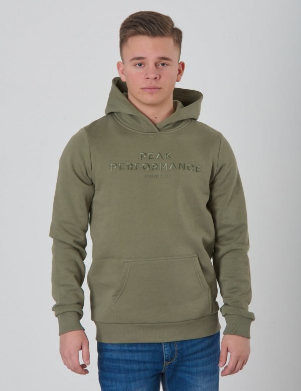 Kategoriana on hupparit, valmistajana Peak Performance, sopii pojille ja värinä vihreä.