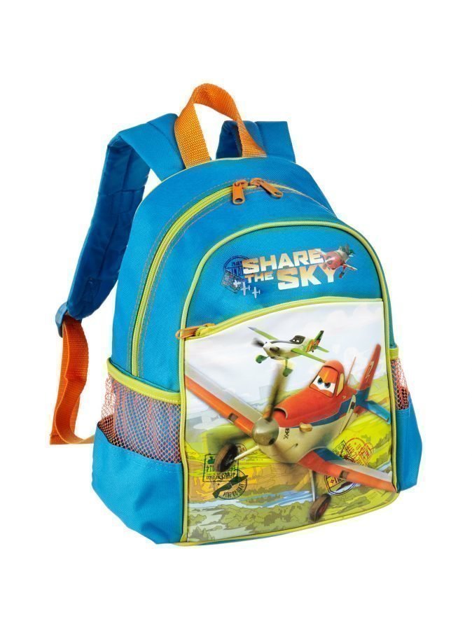 Somassa Lentsikat-repussa on pehmustettu pohja ja kahta lentokonetta kuvaava painatus etutaskussa. Sivuilla on verkkotaskut juomapulloille ja tilavassa, vetoketjulla suljettavassa pääosiossa on vetoketjutasku. Olkahihnat ovat säädettävät ja niissä on rintahihna. Repussa on heijastavia yksityiskohtia ja selkäpuolella on kohta, johon voi kirjoittaa nimi- ja osoitetiedot. Materiaali on polyesteriä.