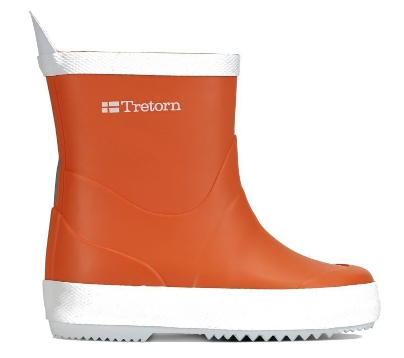 Tretornin oranssit kumisaappaat. Tretornin Wings-kumisaappaat on suunniteltu purjehdukseen, mutta sopivat yhtä hyvin kaupunkikäyttöön. Saappaissa on korkea varsi ja Tretornin logo edessä. Materiaali: kumia, tekstiiliä/EVA