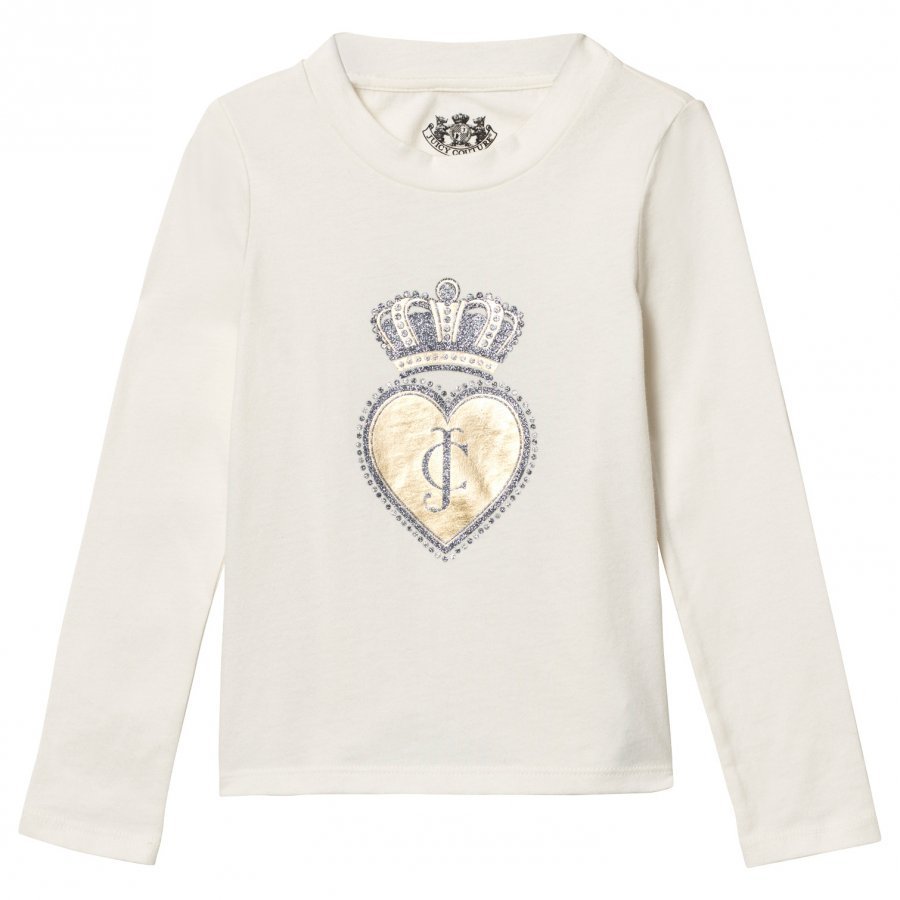Juicy Couture Cream Scotty Dog And Heart Glitter Tee T-Paita